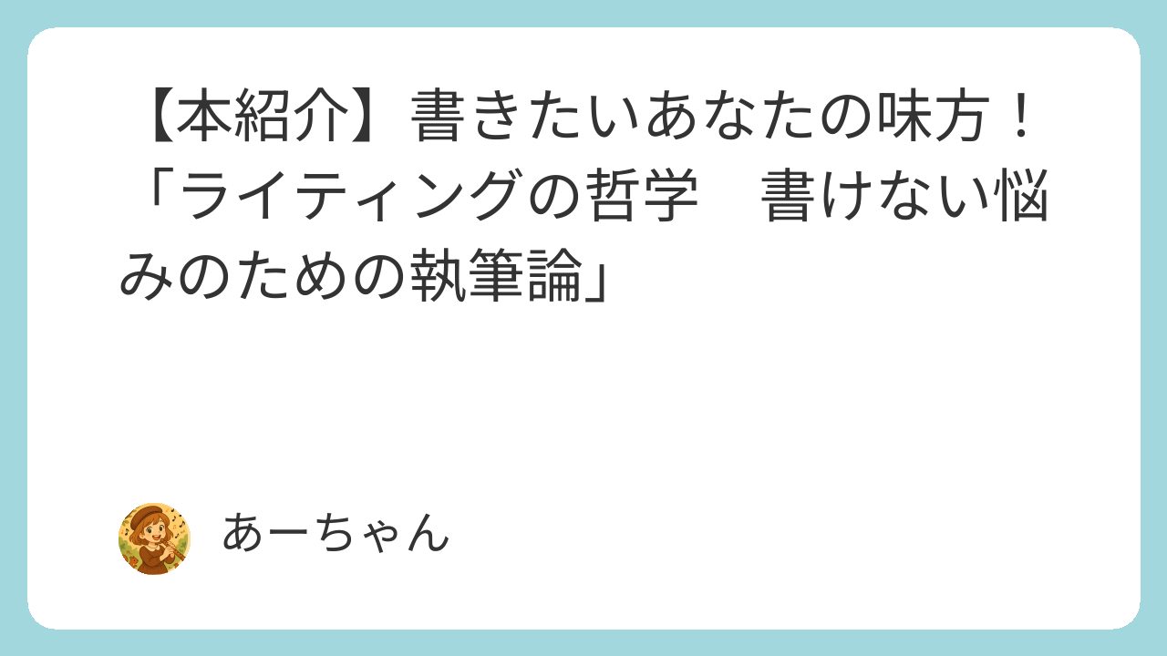 書籍「ライティングの哲学 書けない悩みのための執筆論」の紹介記事です。